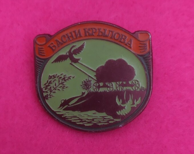 Aesop's Fables > Aesop's Artifacts >...> Series of Pins > Lightweight Pins of Krylov's Fables: Brown, Red, Green