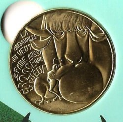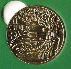 How to pay tribute to Jean de La Fontaine without mentioning the Fables? Monnaie de Paris wanted to celebrate the 400th anniversary of the poet by reinterpreting his work. The reverse of each card contains the complete fable in its original version. Both the cards and the coins are nicely executed! I negotiated with the seller to avoid the ridiculously high postal charges; for that I had to give up getting an original box.