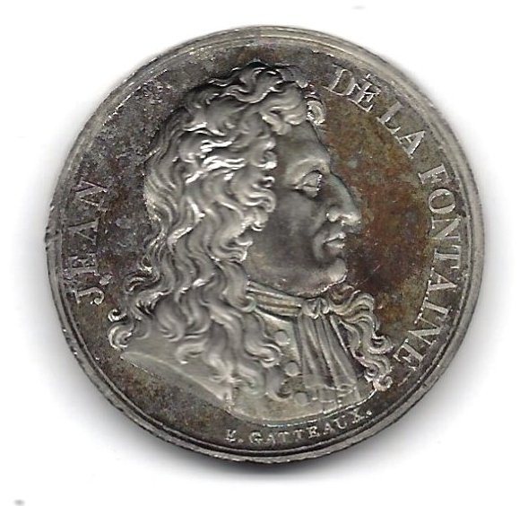 1850? Commemorative reverse “De La Fontaine” medallion. 1.6” in diameter. Apparently blank verso. Gatteau. Source unknown.