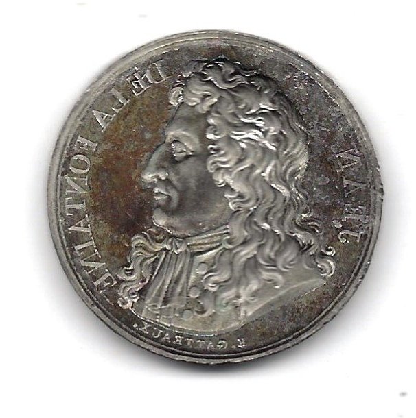This heavy coin features in Latin La Fontaine’s birth and death dates and Chateau Thierry (“Theodorici Castro”). “Series numismatica universalis virorum illustrium.” An identical medal on the web starts at €30.