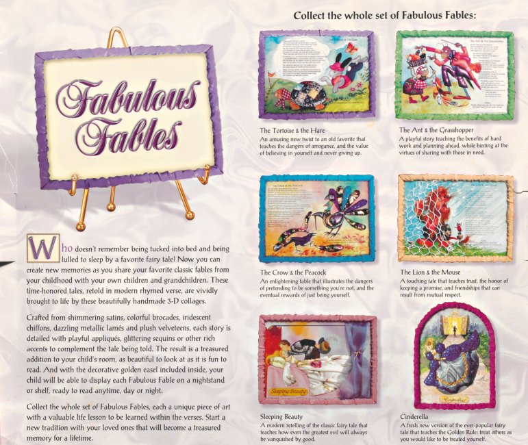 2000 Two out of six illustrations 12” x 9.5” in padded frames with easels, BF and TH. Easels and original boxes. Art copyrighted by Ram Pam Inc. Li-Med, Inc, Vernon, CA. Made in China. Unknown source.