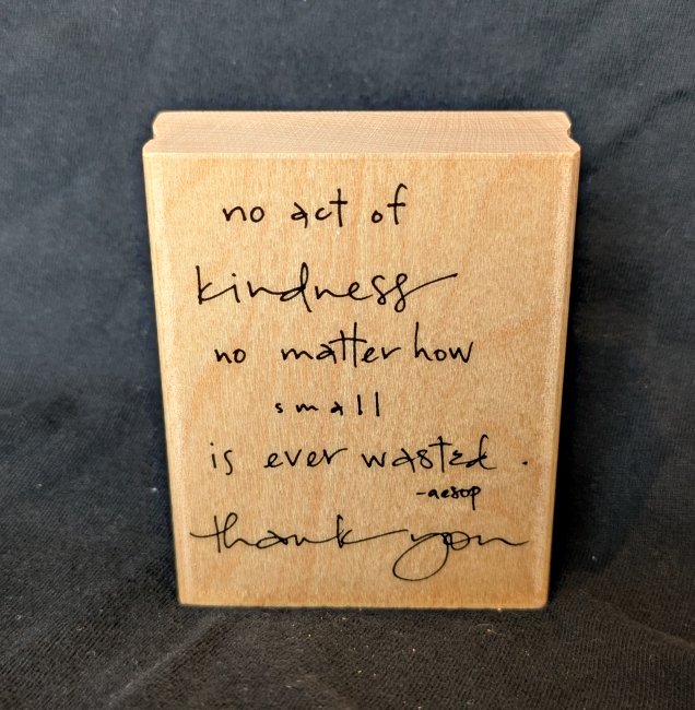 2005 Thank-you Rubber Stamp “No act of kindness however small is ever wasted.” Aesop. 2.2" x 2.6". Berkeley, CA: Penny Black, Inc. Source unknown.