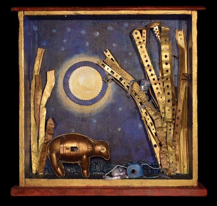 We have four works by Scott Rolfe: three "Aessemblage" works and one photo of an Aessemblage on wood. Let me start with remarks I made when, in 2015, I found Rolfe's 2012 book "Aessemblage."
