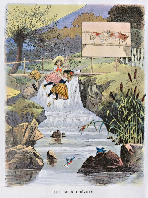 This larger reproduction of the broadside done about 1890 by Maison Quantin is perhaps more precise and detailed than the version done about 1960 and acquired from Librairie AMK in June, '19. It includes the fable's title.