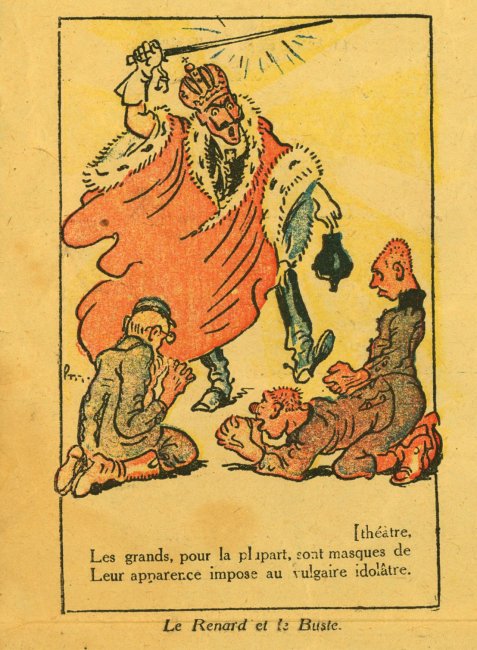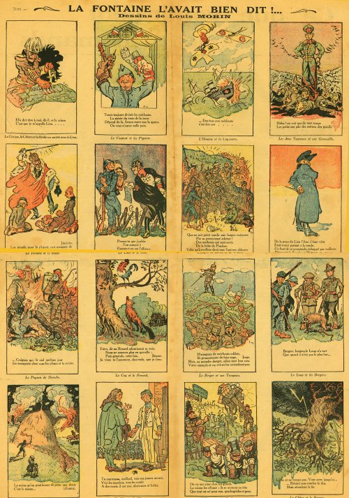 1917? "La Fontaine l'avait bien dit!..." "Dessins de Louis Morin." Paris: Imprimerie Montsouris, P. Orsoni, directeur." Essay by Georges Blondel on the verso. 21½" x 14½. Perhaps €15, perhaps in St.-Ouen.