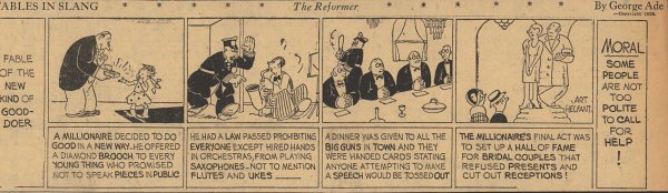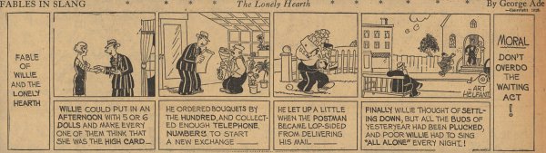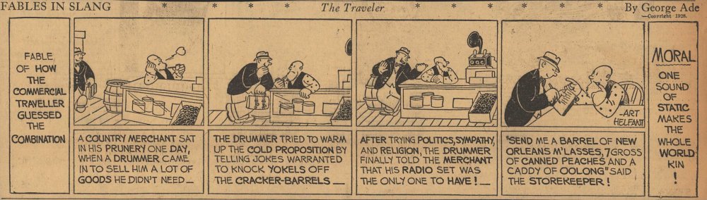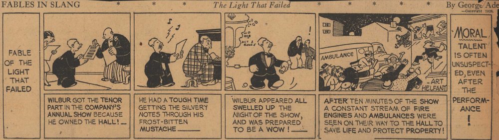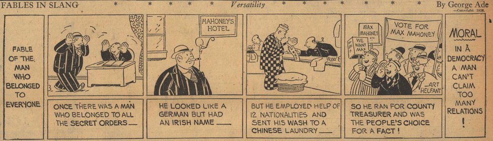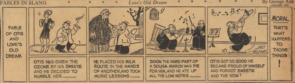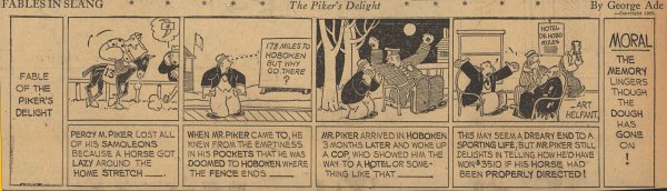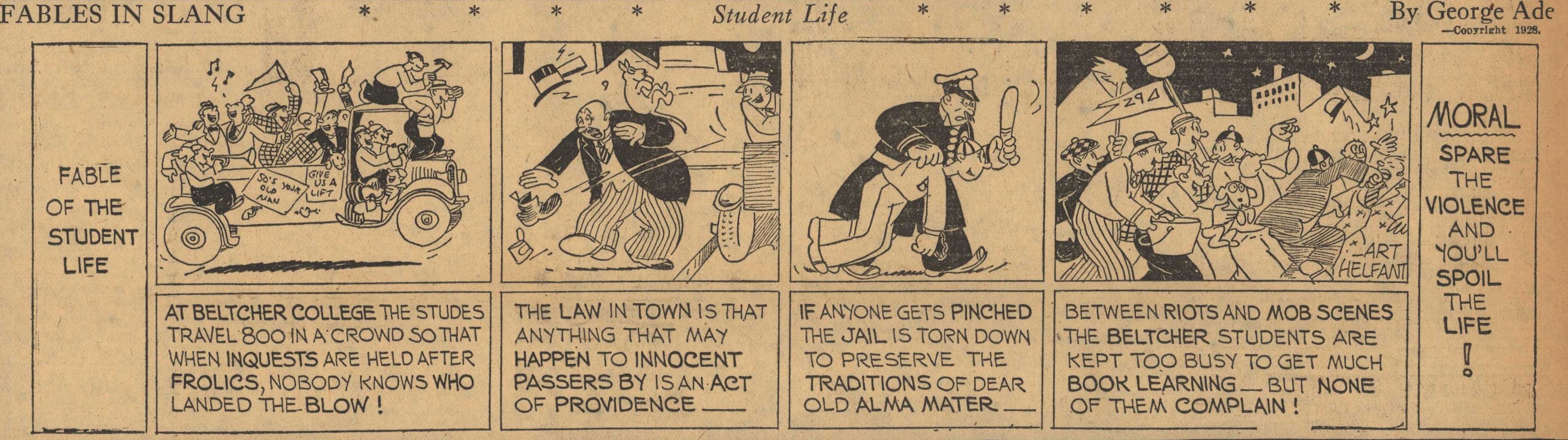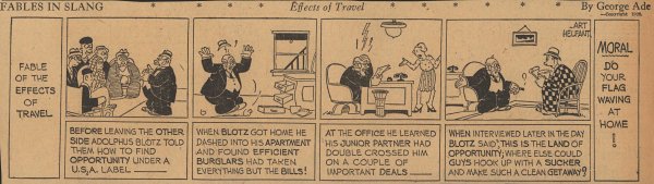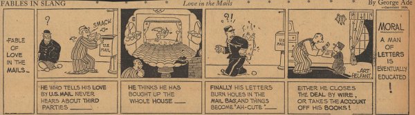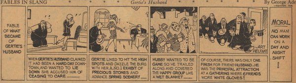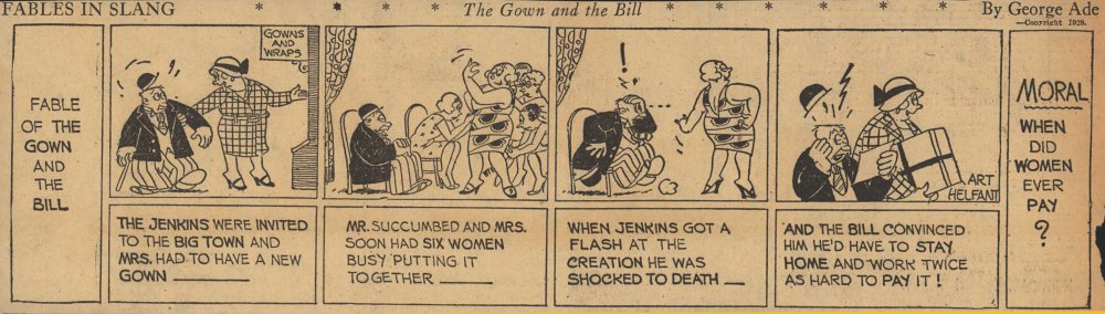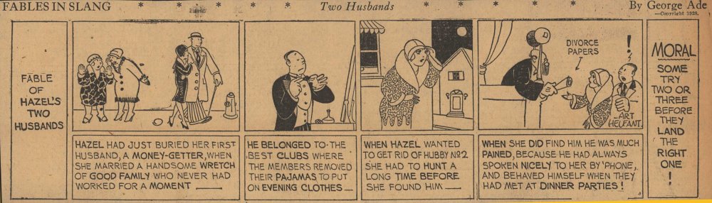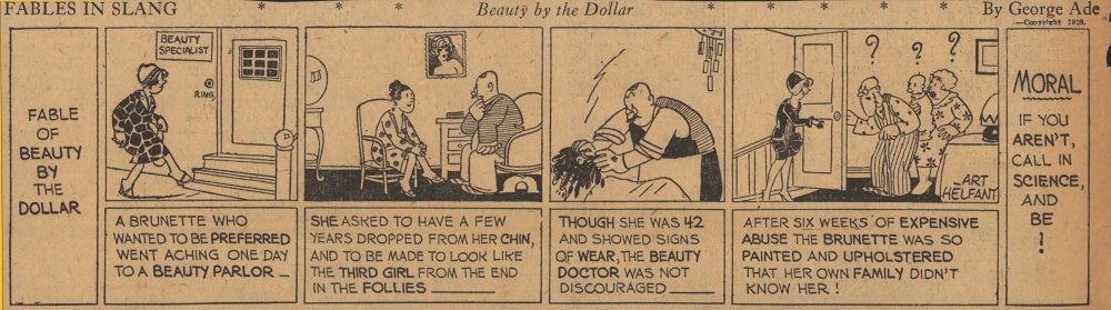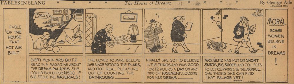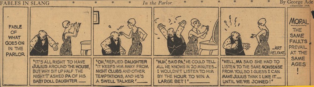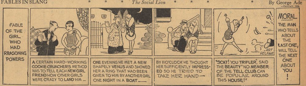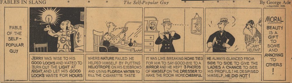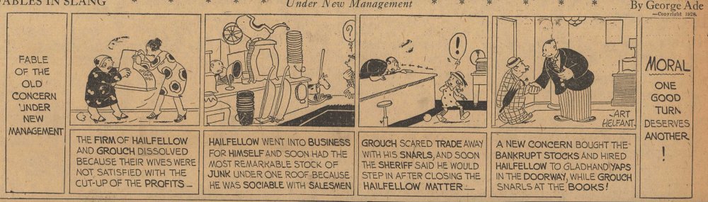 1928  23 "Fables in Slang" comic strips by George Ade.  Many signed "Art Helfant."  Unknown source.