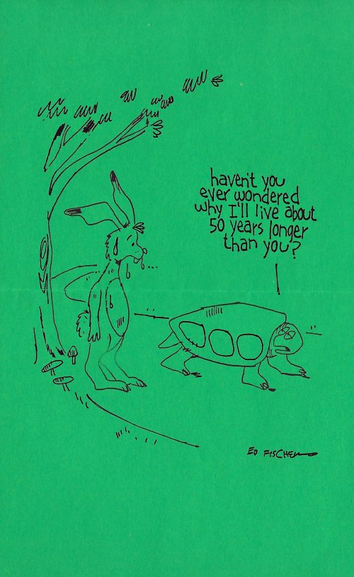 1980 “Aesop…Are you telling me another fable?” Laugh Parade. Bill Hoest. Likely from Parade, a Sunday newspaper supplement. Mounted on stiff card. Unknown source.