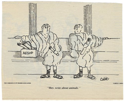 One of my favorite cartoons about Aesop. The expressions on both faces tell a wonderful story. I have used this cartoon frequently in presentations on fables.