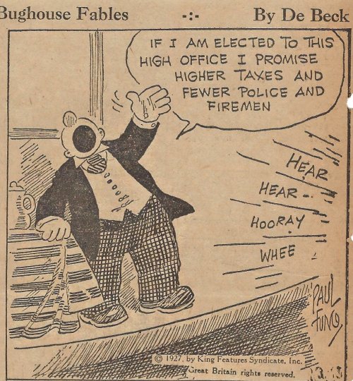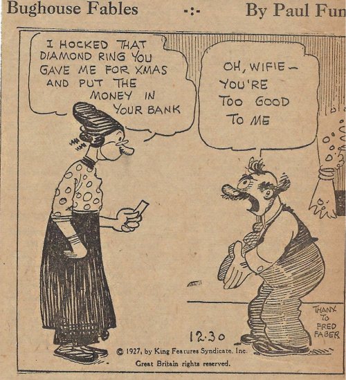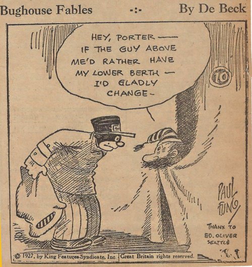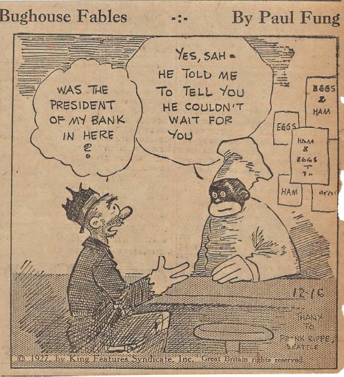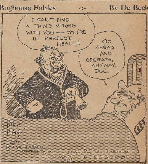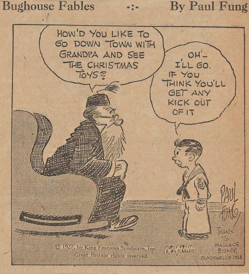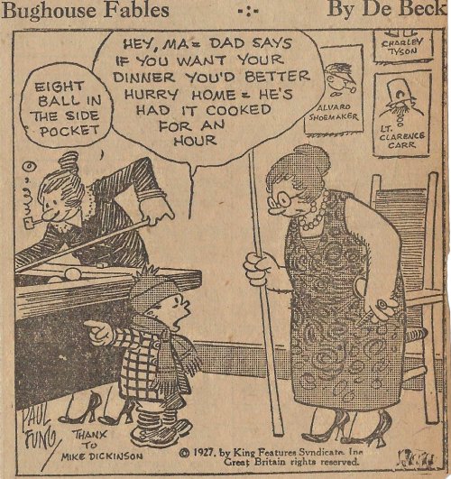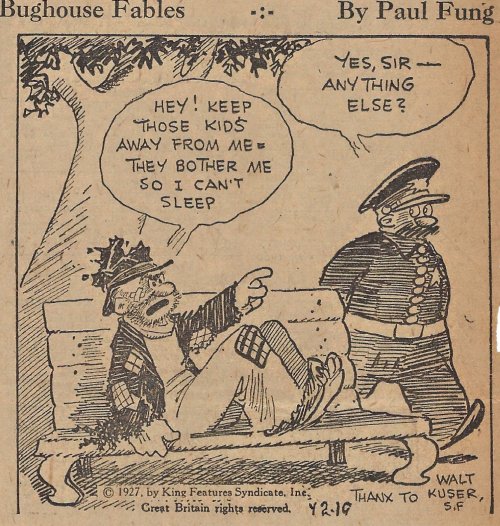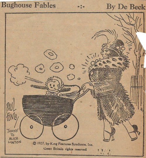 1927 “Bughouse Fables.” 22 newspaper cartoons by Paul Fung and (Clarence “Billy”) De Beck. King Features Syndicate. From Wes Baldwin, Bartow, FL.