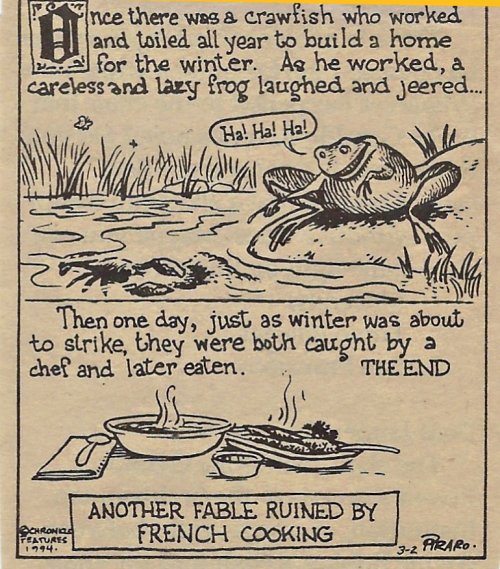 1994 “Another Fable Ruined by French Cooking.” Dan Piraro. Newsprint paper. Chronicle Features. Source unknown.