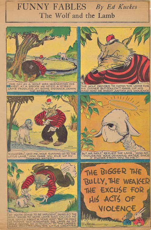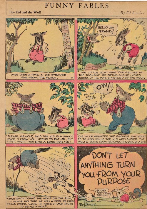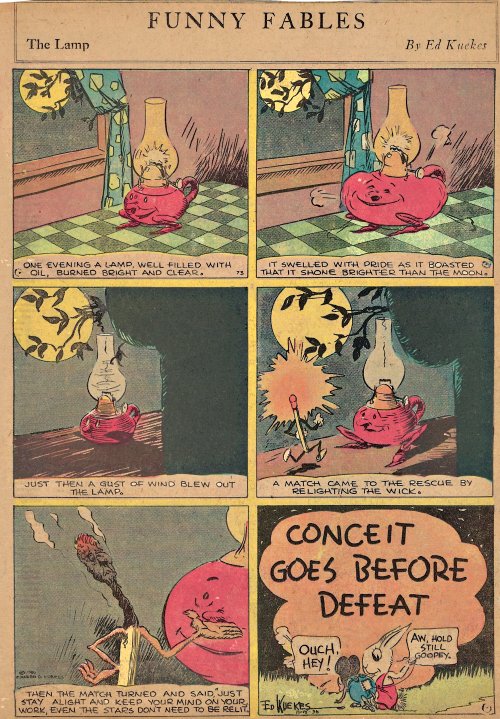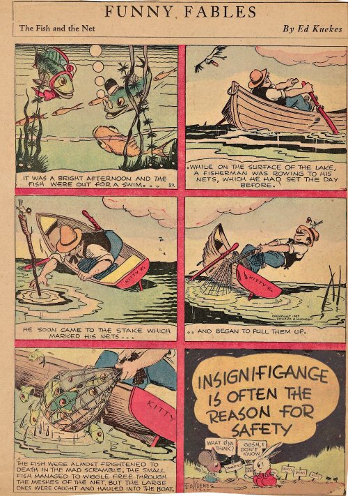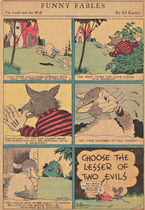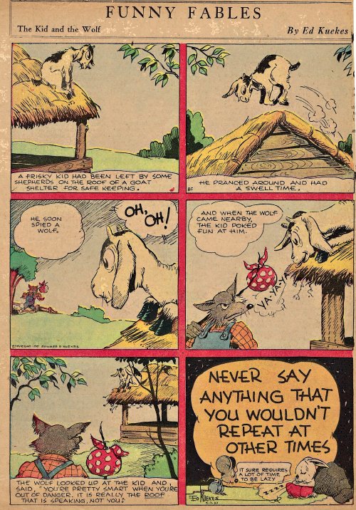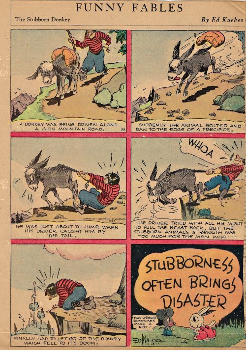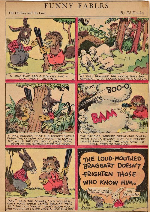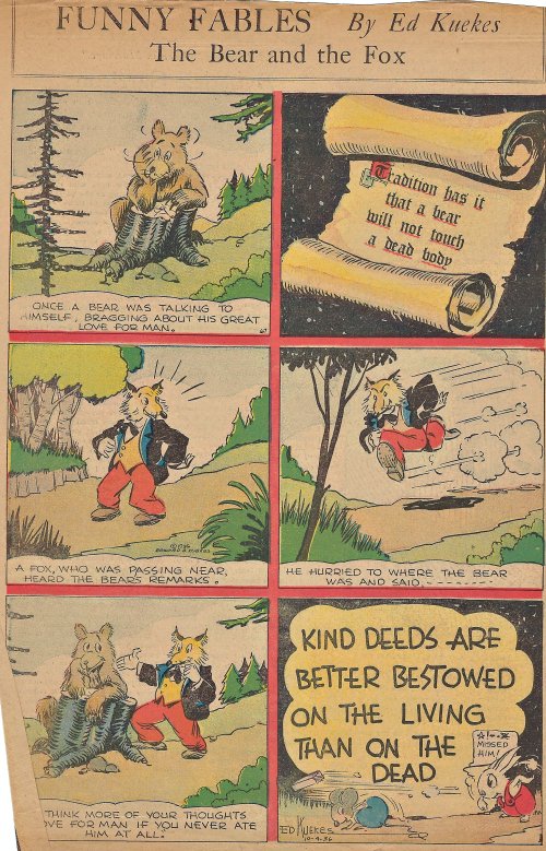 1935-37 “Funny Fables,” 17newspaper cartoons by Ed Kuekes. $1.50 from Louis Warner, Bithlo, FL, through Ebay, Oct., ’02.
