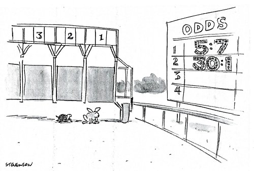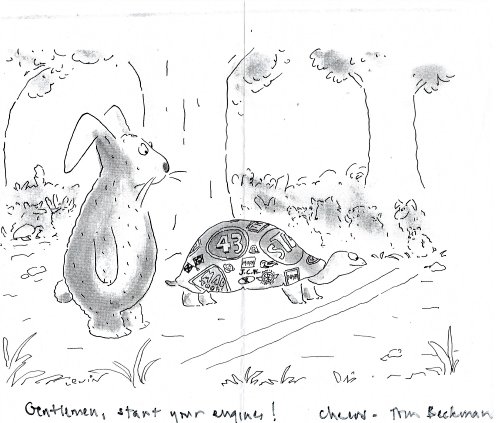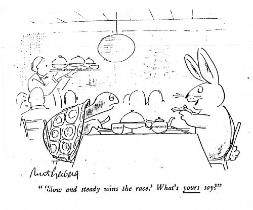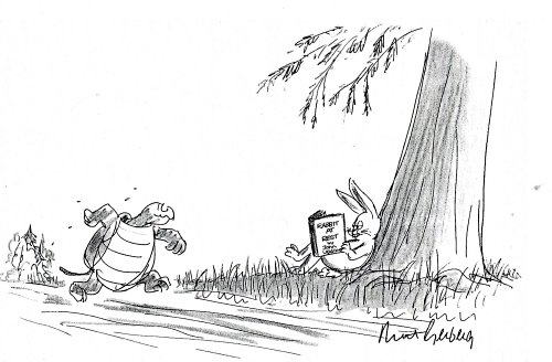 1989 “’Slow and Steady Wins the Race.’ What’s yours say?” Mort Gerberg. New Yorker. March 6, 1989. Xerox copy.
