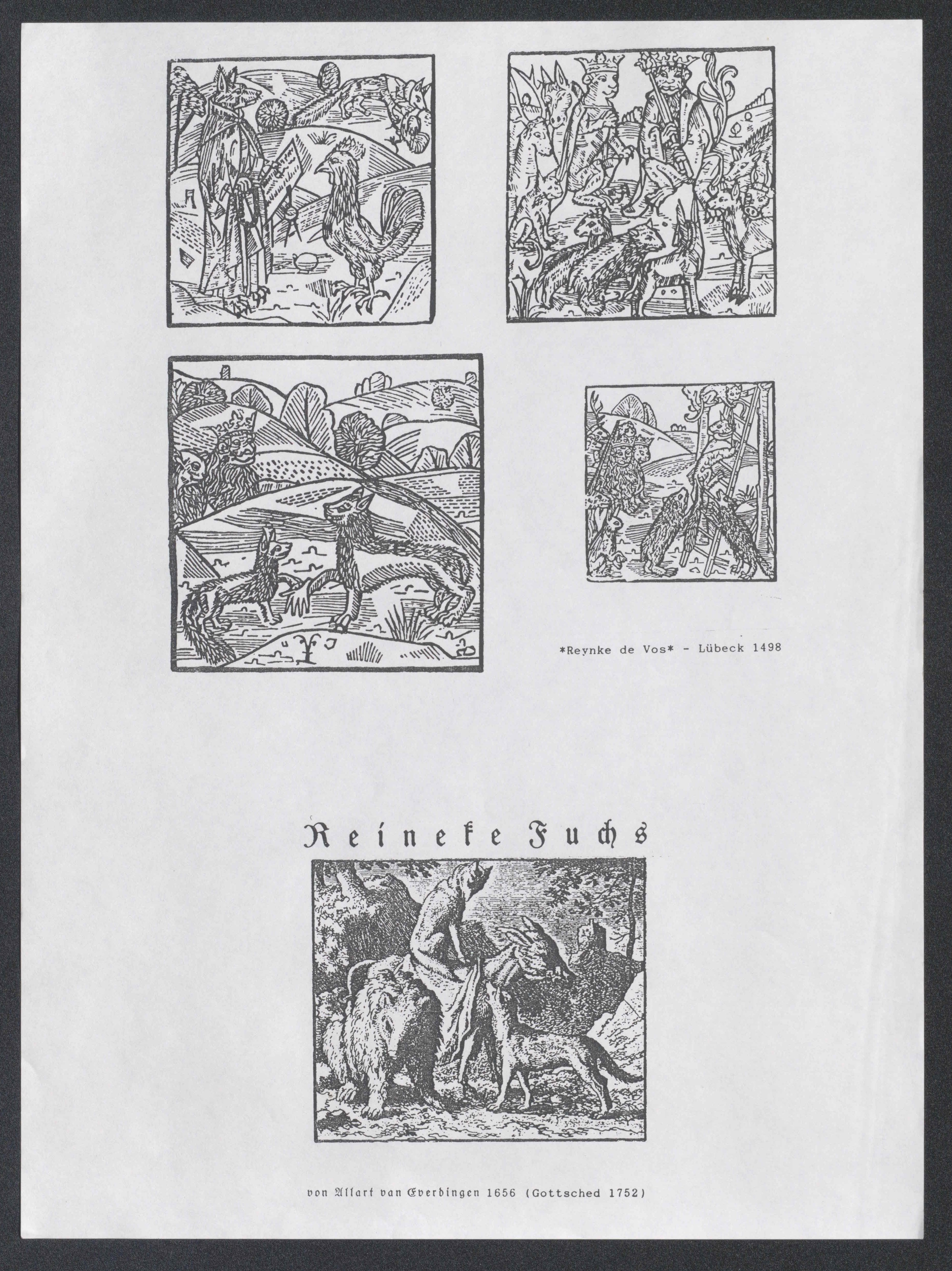 Copy of illustrations from Reynke de Vos (Luebeck 1498) and from Allart van Everdingen 1656 (Gottsched 1752)