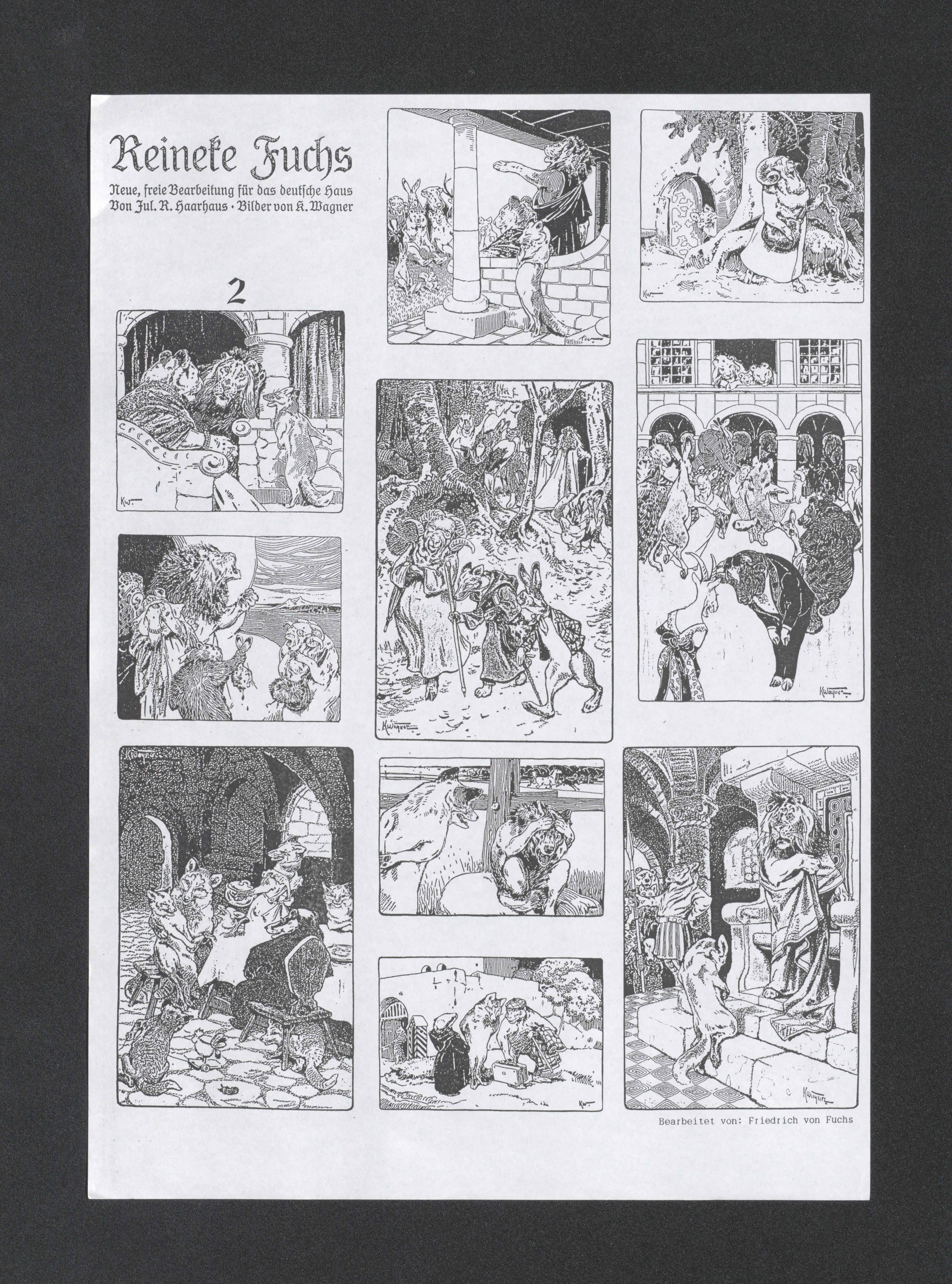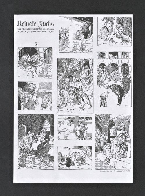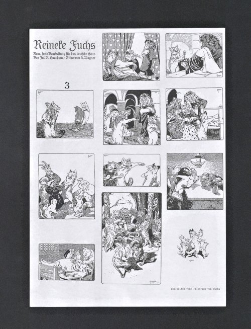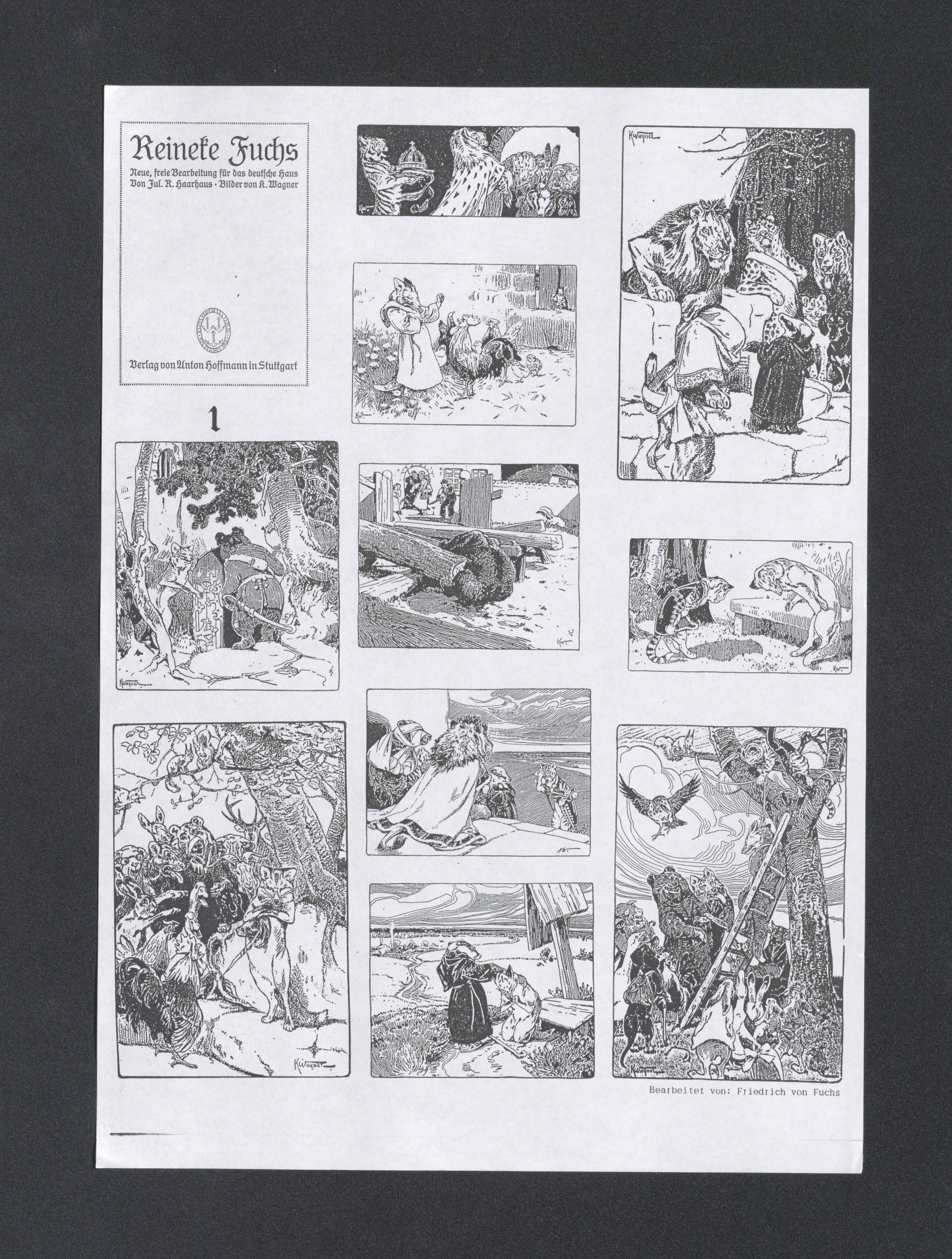 Reineke Fuchs. Neue, freie Bearbeitung für das deutsche haus von Jul. R. Haarhaus. Bilder von K. Wagner. Taken from a book of the same name published by Anton Hoffmann Verlag in about 1910 and in our collection.