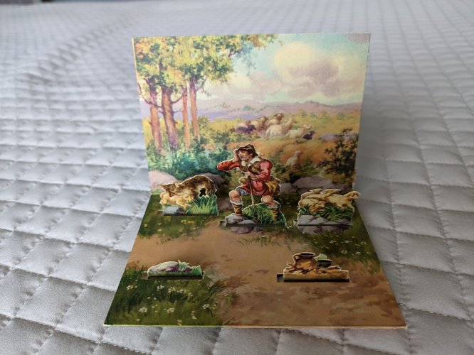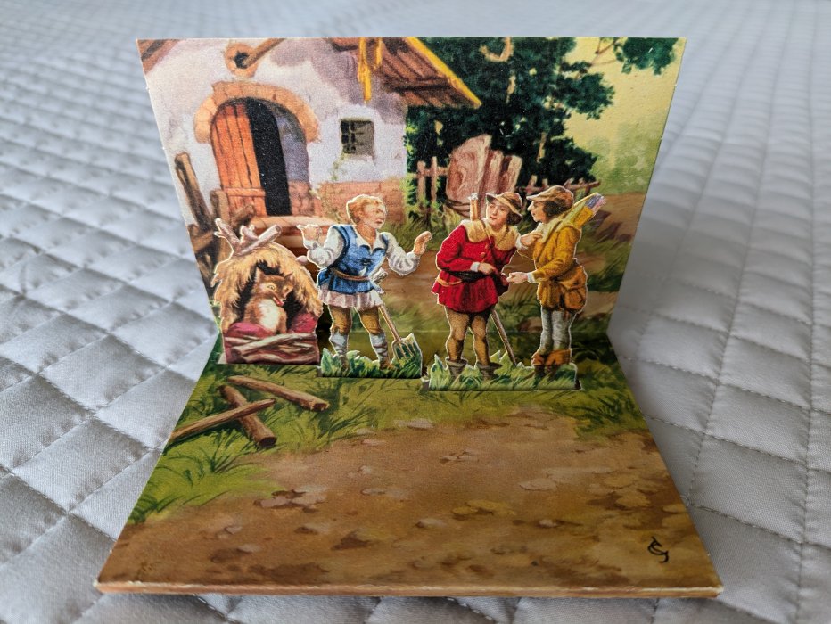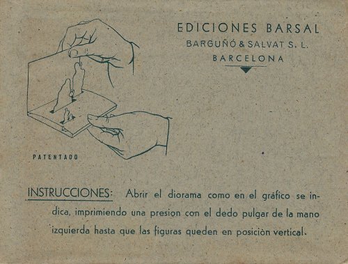 1940? Ten numbered Spanish foldable dioramas in individual envelopes. 3¾" x 4¾". From a set of 19 (and a planned set of 27?). The first seven for £95 from Unicorn Books, Hatch End, Middlesex, April, '98. Three further dioramas for $10.06 each from Libreria Raices, Alicante, Spain, through AbeBooks, May, '24.
