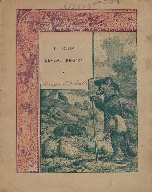 1895? Four schoolbook dust-jackets published by C(amille) Charier in Saumur, France, depicting fables: “Wolf Become Shepherd”; TB; TMCM; and WC. $10 each from Bertrand Cocq, Calonne-Ricouart, France, Sept., ’21.