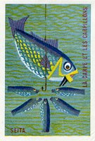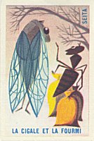 each giving the title and an illustration for a fable of either Jean de La Fontaine or Florian. The total set may number fifty. Fifty were announced, but so far I have found only these thirty. There are also two larger 2 3/8" x 2¾" labels, apparently for a package of ten of the packets that would use the sixteen individual labels. AU $10 from Dave Cox, Drysdale, Australia, through Ebay, Sept., '00. Several extras and two new labels from Dany Wolfs, Roesalare, Belgium, August, '00. Four extras and twelve new labels for $14.19 from Jim Swiftway through eBay, April, '04. Sixteen extra covers for $21.10 AUD from Regis Danillon, Balmoral, Australia, through Ebay, August, '07