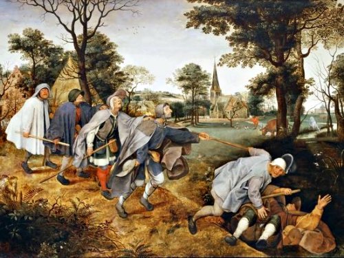 2015? “The Blind Leading the Blind,” rolled canvas copy of the painting by Pieter Breughel the Elder. Image 18.5” x 12”. Canvas 19” x 13”. From an unknown source.