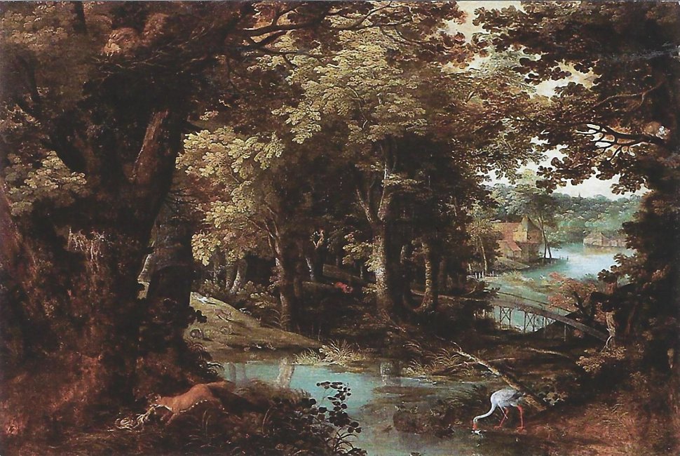 2000? Photo Print Reproduction of Adriaan Van Stalbemt, "Landscape with Fables," 1620. Royal Museum of Fine Arts Antwerp: oil on panel. Photo £2.50 from J. Williams, Essex, UK, through BidStart, Nov., '17.