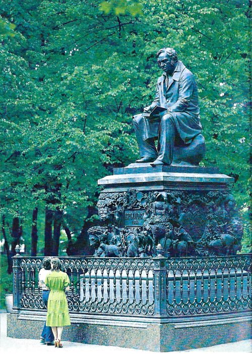 1996? Photo of the Ivan Krylov memorial in the Summer Garden, St. Petersburg. 4” x 5.7”. Gift of Simon Mogilevsky.