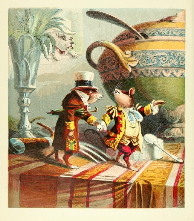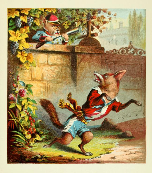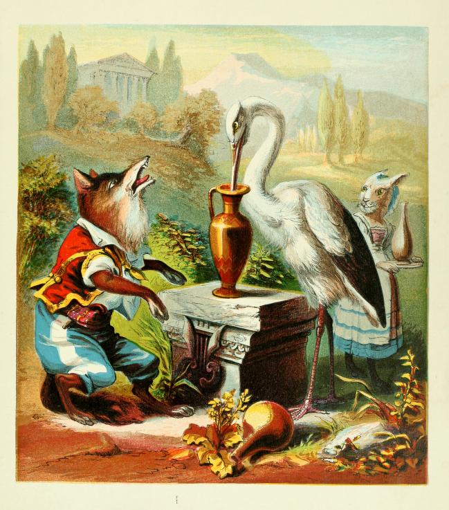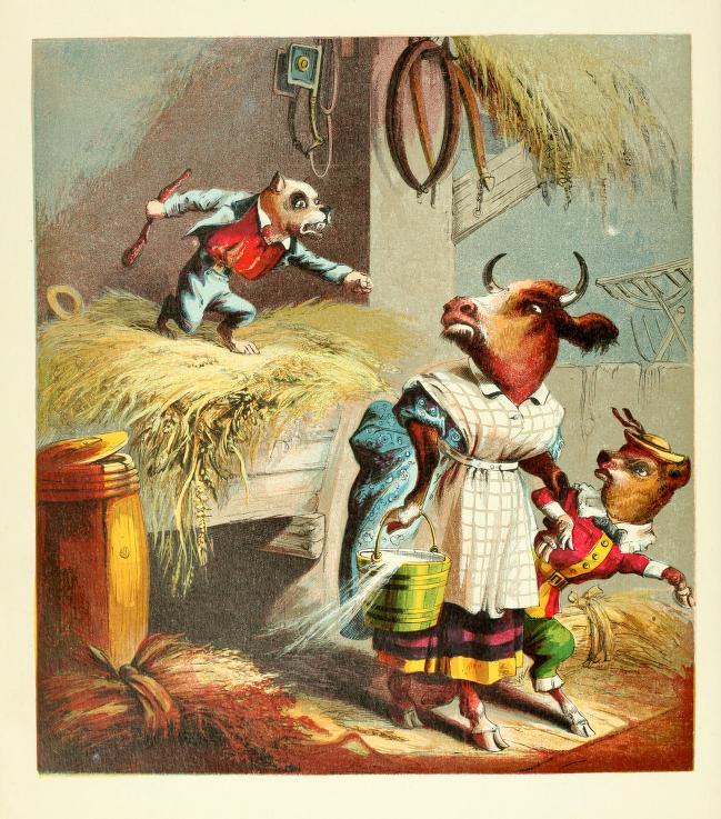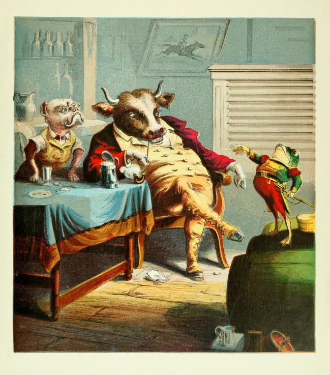 The reproductions here are well done on heavy card stock. They can be of such high quality partly, I believe, because the original McLoughlin illustrations were full-page illustrations, especially in their “Aesop’s Fables” of about 1880-90, whose interior title was “Old Fables in a New Dress.”