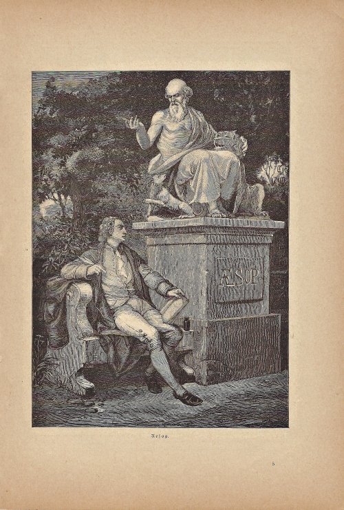 These pages reproduce the oft-printed work Lessing did on fable. I include it in the collection chiefly because of its illustration of Aesop looking down on someone. Other illustrations include a portrait of La Fontaine and more generic illustrations of fishing and hunting.