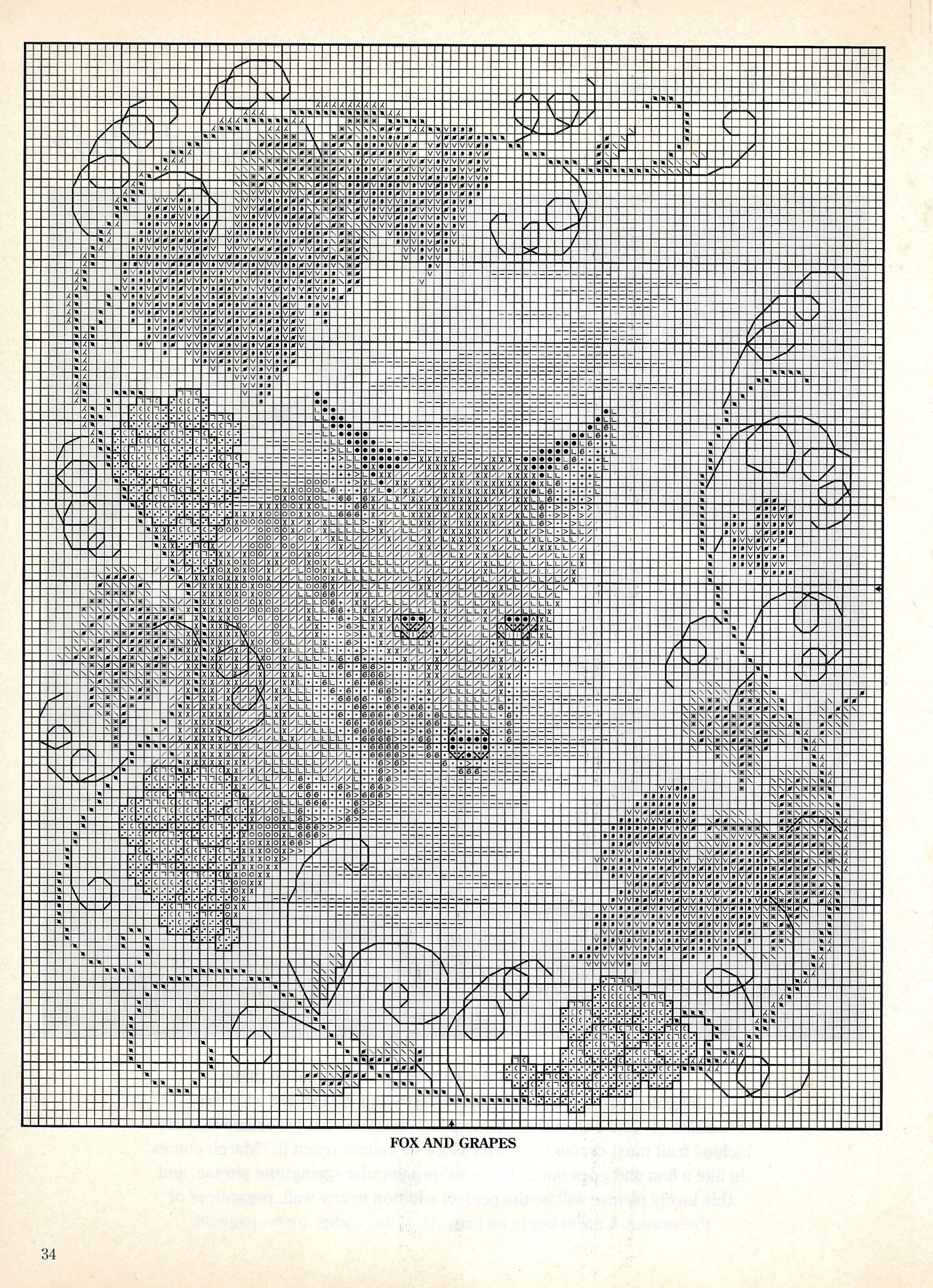 This brochure features a lovely colored cover and detailed patterns for three other animal images (“Owl & Pussycat,” “3 Blind Mice,” and “The 3 Bears”) and for two fables: TH and FG.