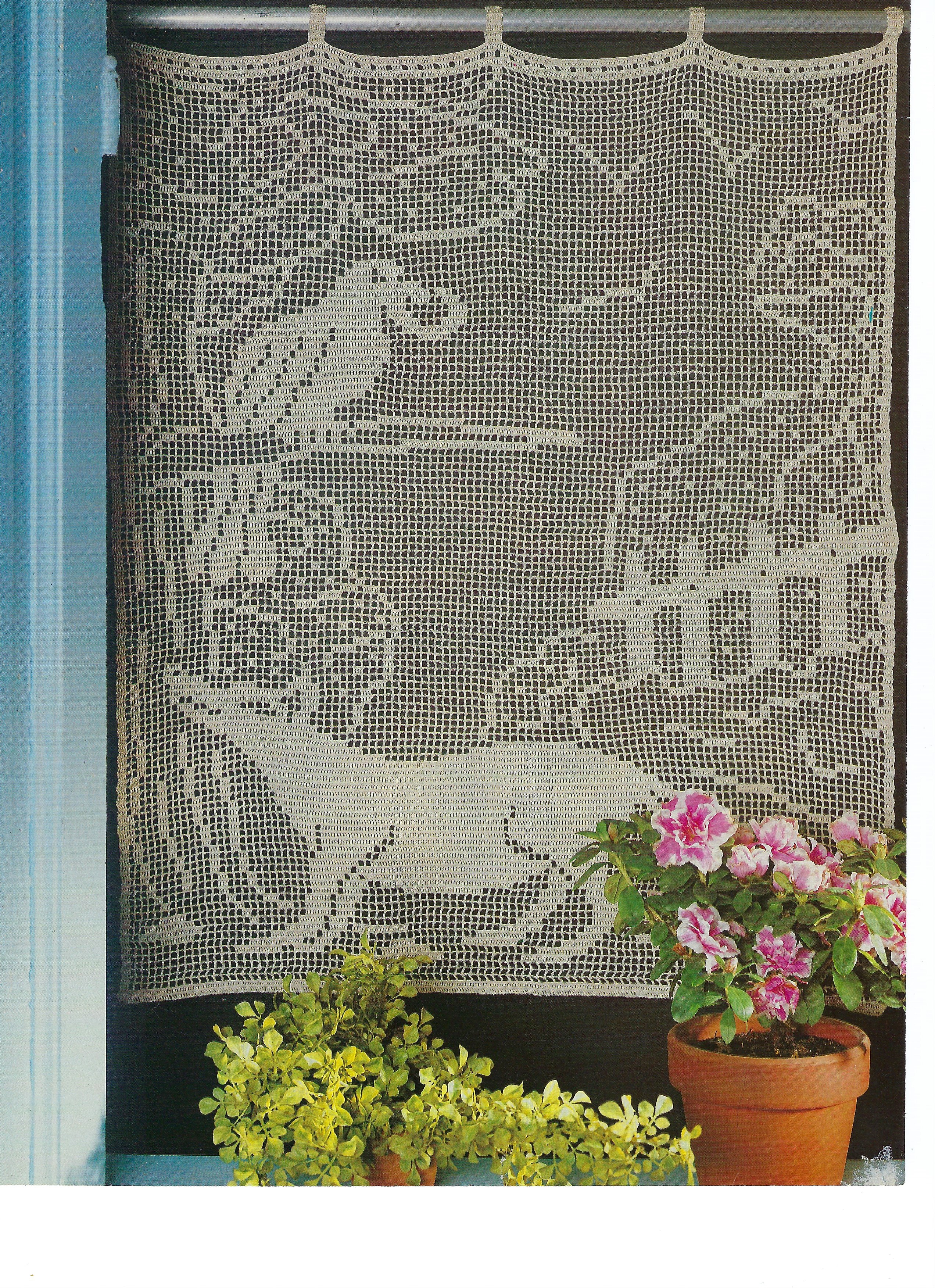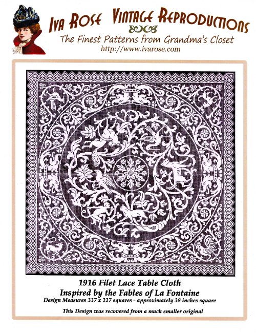 2000? 1916 Filet Lace Table-Cloth Pattern of Fables. Iva Rose Vintage Reproductions. $9.31 from Peggy April, New Bedford, MA, through Ebay, August, ’11.