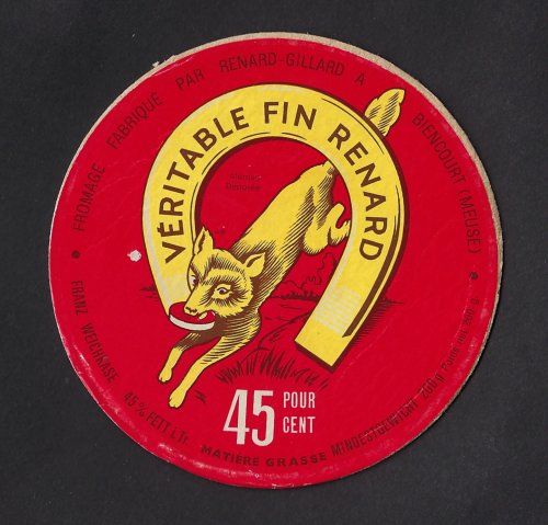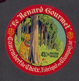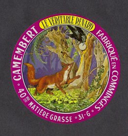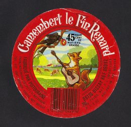 1980? Camembert Extra Fin cheese label. Fromage du Fin Renard. "Ce Qui Se Fait de Mieux." Litho. Myncke, Brussels. $8 from Dany Wolfs, Roeselare, Belgium, August, '00.