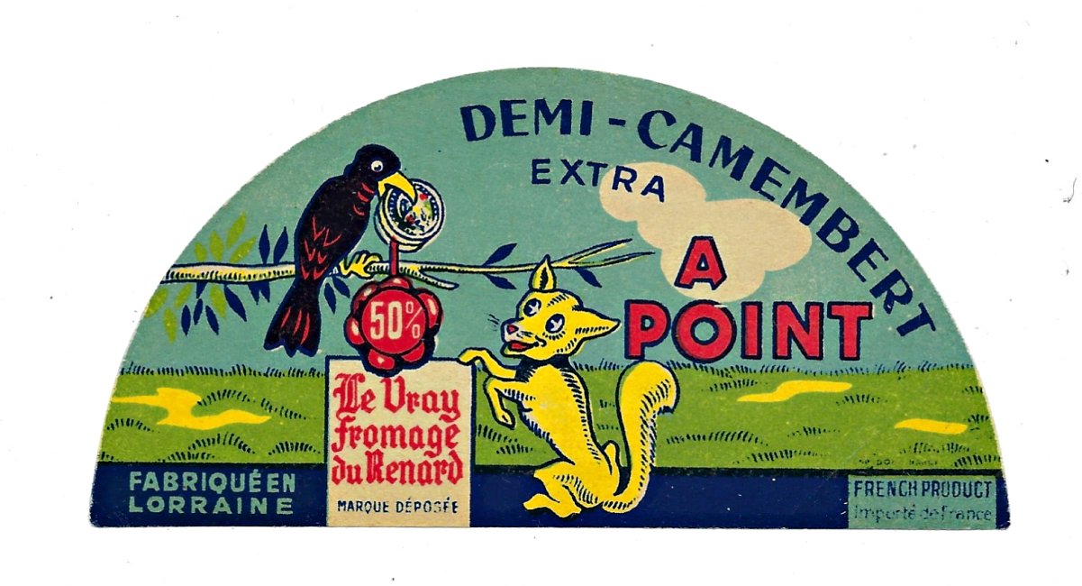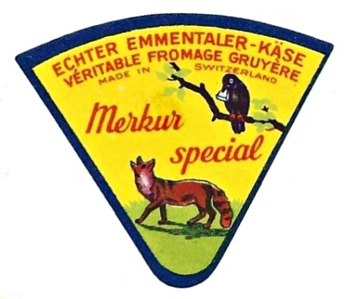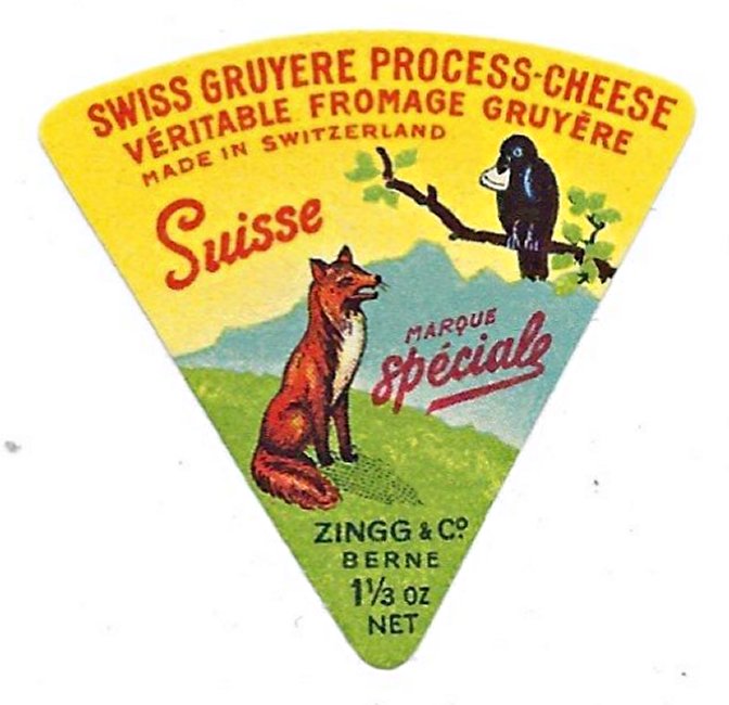 1990? Half-Circle of Camambert Cheese with Individual Fable Wrappers. Berne: Zyngg and Company? Six labels for 10.50 from cosmopolitepapiers through Ebay, Dec., '05.