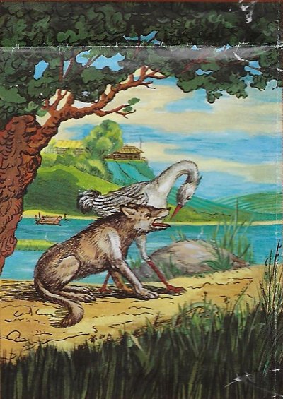 These four large (8½" x 8") wrappers include a lovely fable picture, which I offer here in each case as a detail. Do not miss what I believe is a double fable representation in the last wrapper. I believe that the artist is representing two fables at once. Might the human figure there suggest even a third fable?