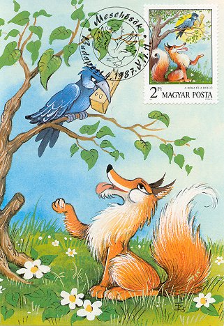| 1983 1 Stamp marked "Magyar Posta," "A Róka és a Holló," "Fúzesi ZS," and "2 Ft." FC. $.09 from Julie Collins of Valparaiso, IN, through Ebay, Nov., '99.