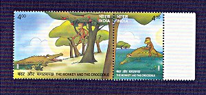 2001 Full Setanant Set of Four Fable Stamp Pairs from India. Mint. Never hinged. Both stamps in each pair are marked "400." $8.50 from Vasanthi Balson, Columbus, OH, through eBay, Oct., '02.One extra set from the same source at the same price at the same time.