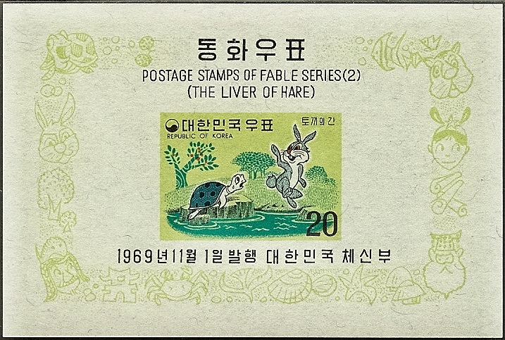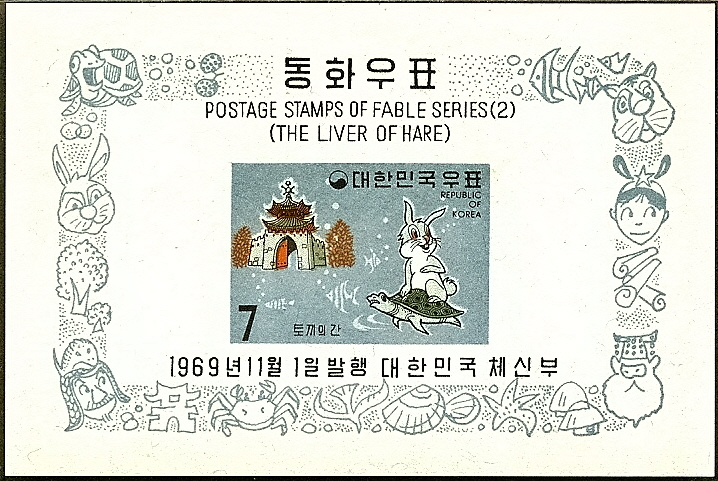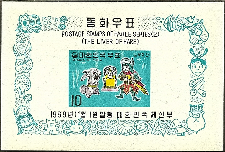 1969-70 Four South Korean Stamps Illustrating “The Hare’s Liver.” From Jay Wendt, East Norriton, PA, 2018?