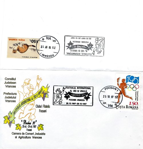 1992-1997: Romanian Wine Festival Mail Cancellations. 5 envelopes from successive wine festivals beginning in 1992. $13.90 from Costan Nicolae, Luogoj, Romania, through Ebay, May, ’06.
