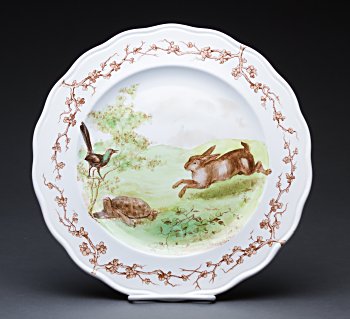 Several manufacturers of tableware have produced different kinds of objects, which have at least a loose connection with each other because of fable themes. I have found three such: Brown-Westhead, Moore, and Co.; Spode; and Royal Winton.