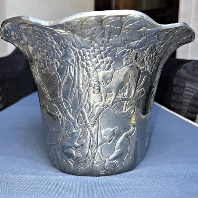 We have long had a lid, and I have wondered if it is from Arthur Court; I have even wondered “For what is this is a lid?” By luck today on Ebay, I found my answer. I was willing to settle future questions by buying a whole new bucket and lid. So now we have two Arthur Court lids! I still wonder if the fable here is more FG or FWT.