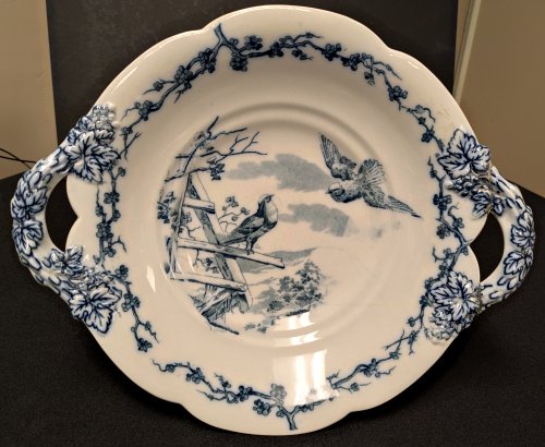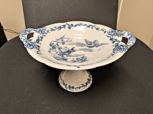 1880? Brown Westhead Moore and Co transferware pedestal dish illustrating “The Two Doves.” 13” in diameter, 7” high. Unknown source.