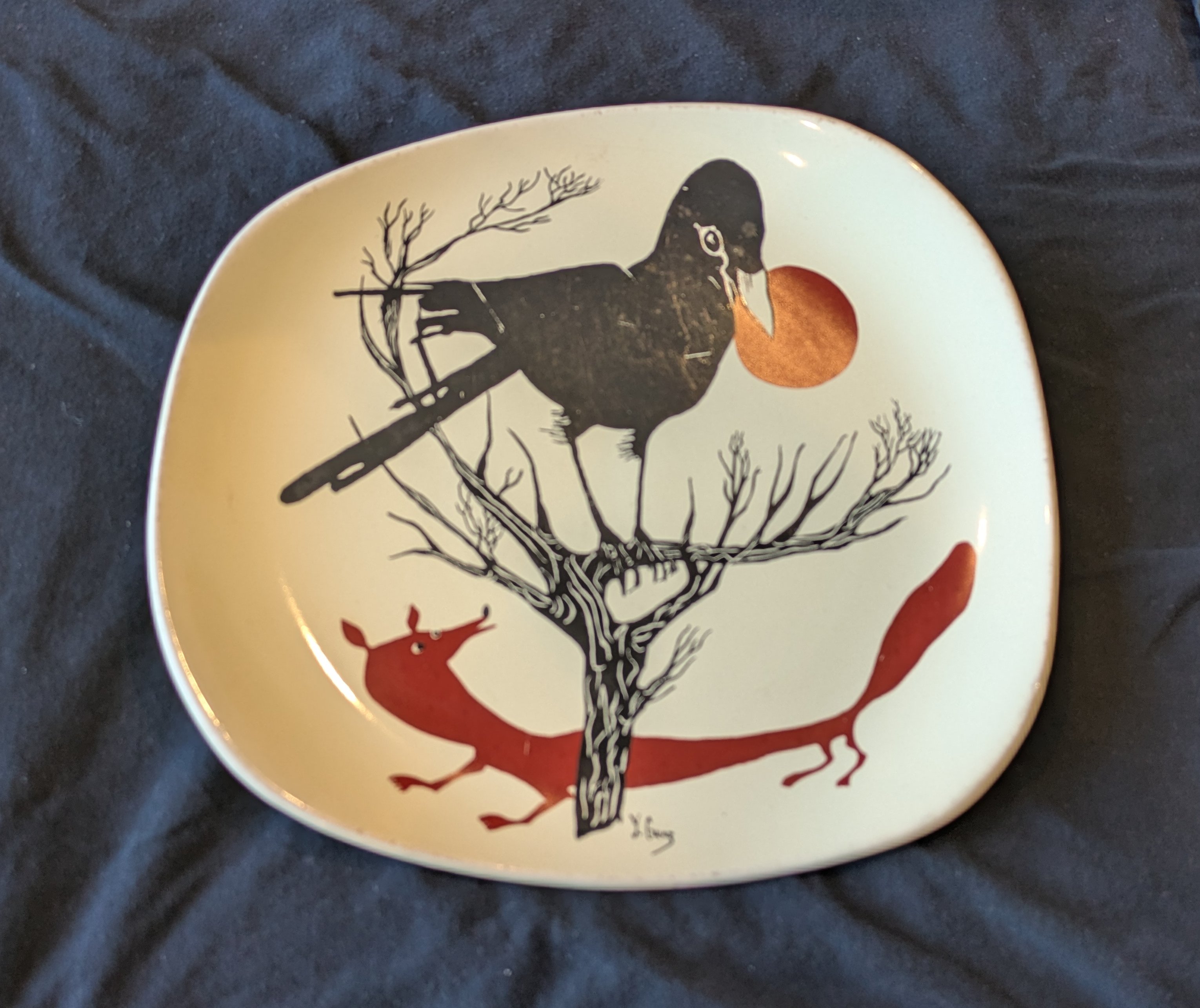 1965? Ceramic FC platter. Titled “Corbeau.” Yvonne Cruaz. Salins France. 11.5” at its greatest diameter. Unknown source.
