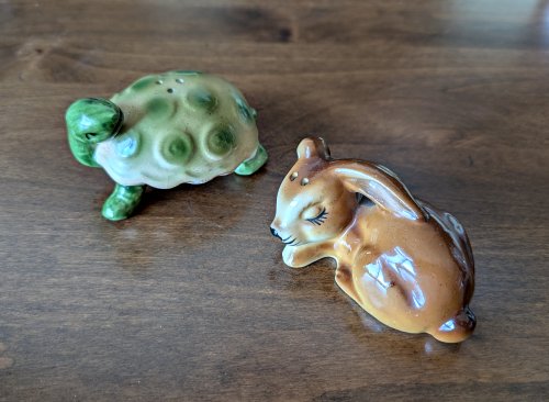 I keep finding salt and pepper shakers based on fables. It is a standard hunt for me in antique shops!