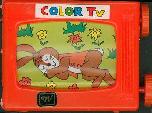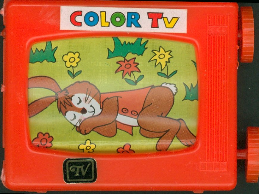 1970? Small plastic "Color TV" with scrolled scenes of TH. 12 pieces. Nobbies, Omaha?