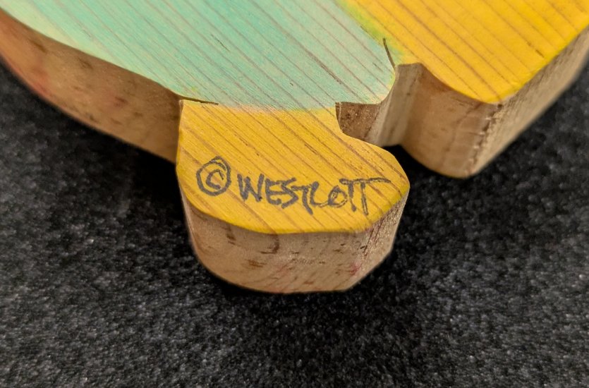2020? TH wooden two-piece puzzle. C Westcott. 3.75" tall, 3.5" wide. Unknown source