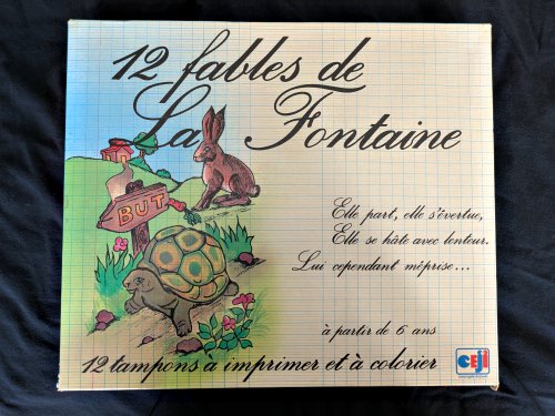 1970? 12 fables de La Fontaine: 12 tampons à imprimer et à colorier. à partir de 6 ans. Compagnie du Jouet. Made in France. Source unknown.