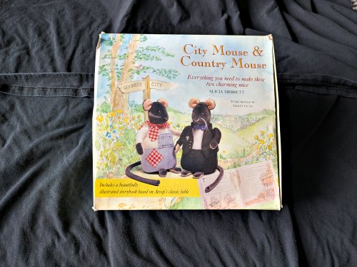1996? City Mouse & Country Mouse: Everything you need to make these two charming mice. By Alicia Merrett. With a book of the same title. Material, patterns, and step-by-step instructions on how to put together the two mice figures that dominate this story. $2.25 from Caravancass 1 through Ebay, Sept., '01. One extra copy.