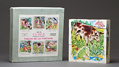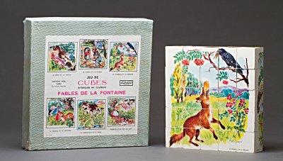 1981? Jeu de Cubes artistiques en couleurs: Fables de La Fontaine. Made in France. Paris: Jouets Vera: Éditions Vera. €40.50 from Alain Camus, Gerzat, France, through eBay, July, '04.