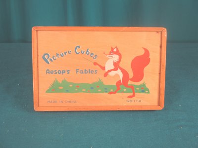 1980? Chinese story-blocks #1, including FS, "The Deer with Beautiful Antlers," CP, DS, TH, FC. The collection has four exemplars of this version of picture cubes. One found in a small-town Minnesota toy shop with Linda Clader. Another for $8.95 from Sandi Shaw, Concord, CA, through Ebay, Jan., '03. The third for $5.50 from Timmy Sisung through Ebay, April, '04. The last from T. Stanford, Neptune Beach, FL, through Ebay, Dec., '12.