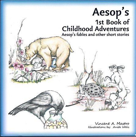 2012 Aesop's 1st Book of Childhood Adventures: Aesop's fables and other short stories. Vincent A. Mastro. Illustrations by Anita Wells. Paperbound. Aesop's Childhood Adventures: Vangelo Media. $4.49 from Ivy League Books, Hamden CT, through eBay, Dec., '13.