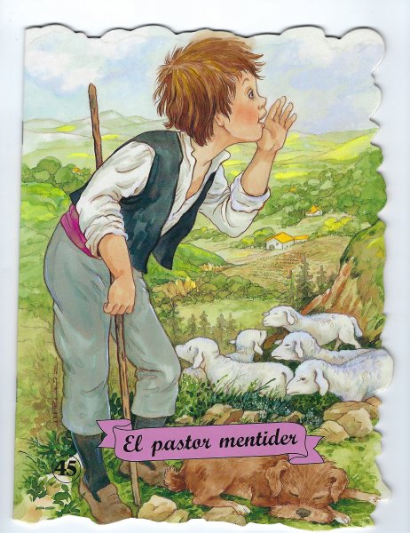 2016 El pastor mentider. Mireia Cormudella. Illustrated by Margarita Ruis. Pamphlet. Barcelona: Col-leccio Encunyats Classics #45: Combel Editorial. €1 from St. Andre flea market, Barcelona, July, '24. CC 45.