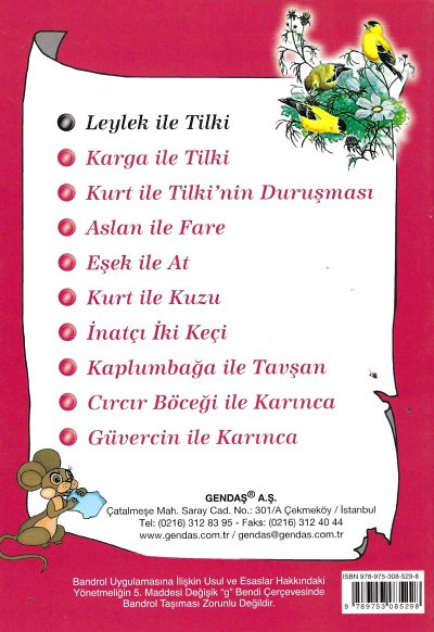 2014 Leylek Ile Tilki (Stork and Fox). Memet Turkkan. Illustrations by Ferihan SEN & Hatice SEN. Pamphlet. Istanbul: Gendas La Fontaine Masallari: Gendas, A.S. $5 from thegreatcollectors through Ebay, June, '22.
