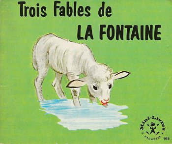 Members of the series "Hachette Mini-Livres" have been a challenge to me. I have found four different members, ordered a fifth, and learned of two others. However, it may be that there are really only two booklets at issue here. What has caused the seven different items then? I believe that there are two reasons for this confusing multiplicity. One is that numbering systems changed at least once. Thus the two pamphlets titled "Quatre Fables" are the same but have a different number in the lower right corner of the title-page -- and were published in different years: #27 in 1964 AND #144 in 1967. The second source of confusion is that the same booklet was published with four fables (1967) and then with three (1971). For some reason, "The Fox and the Goat" drops out of the 1971 version, even though the goat still appears on the title-page! I have ordered another copy of the latter book, with a different number (#143, not #29). I am aware of a #189, which seems identical with #240, and of both #165 and #241, which seem identical with #144. My, how confusing!